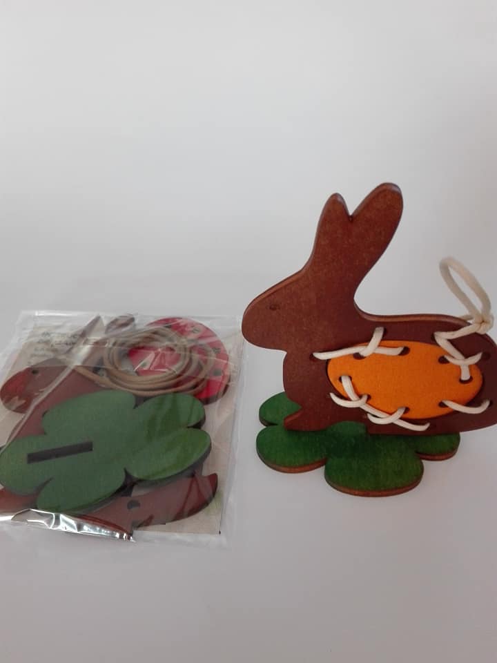 Iepurasi cu dimensiunea de 9 cm x 7 cm realizat din placaj plop 4 mm. Pachetul contine snurul cu o lungime de 50 cm si grosime de 2-3 mm.